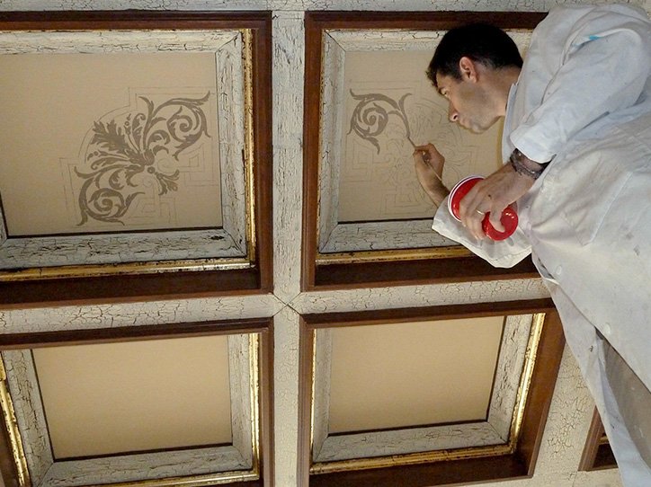 Daniel Yordanov trabaja en el ámbito de la pintura ornamental aplicada al muro. Formado en Bellas Artes en Sofía, ha profundizado en el conocimiento de las técnicas tradicionales a través del estudio del patrimonio histórico, el viaje y la consulta sistemática de fuentes especializadas. Su práctica se orienta tanto a intervenciones en contextos patrimoniales como a proyectos contemporáneos